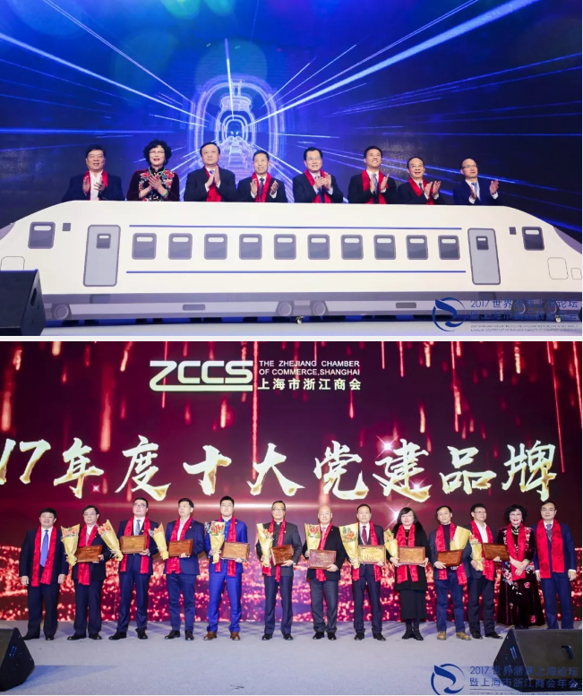 商會黨委李藝連書記與郭廣昌會長等見證了海南市:内蒙古商會輪值會長的交接儀式,共同啟)動浙商助力長三角大交通一體化發展平台,并為十大黨建品牌頒獎。
